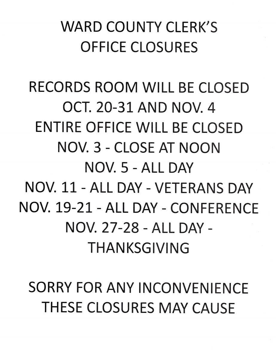 ***OFFICE CLOSURES LISTED AT BOTTOM OF PAGE***